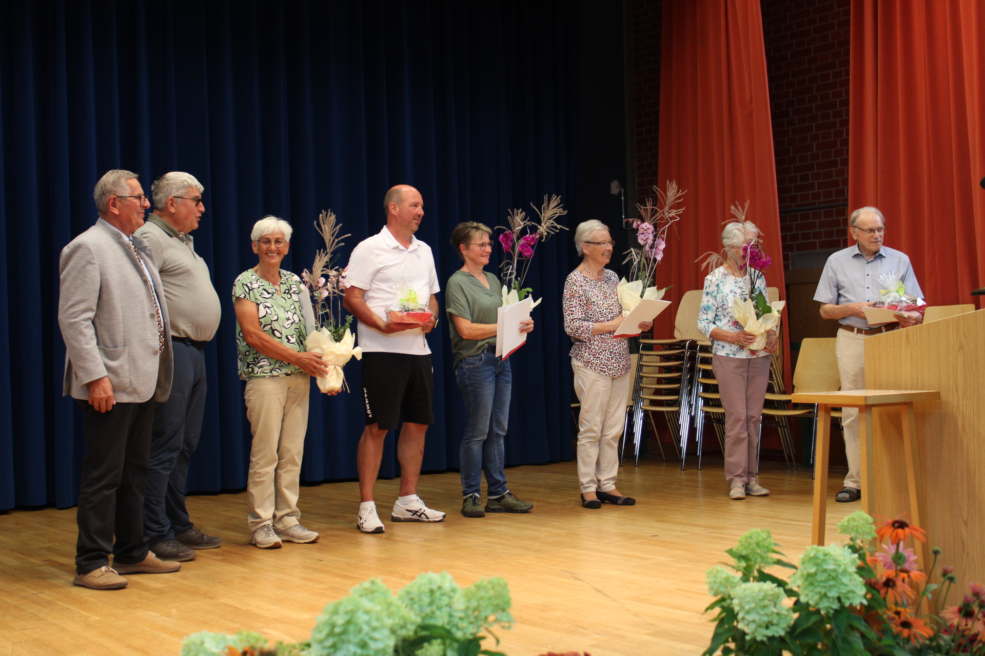 Gauobmann Claus Bayer grüßte auch im Namen des Vorstandes des Schwäbischen Albvereins und überreichte die Urkunden für langjährige Mitglieder. Für 40 Jahre im Schwäbischen Albverein wurden Irmgard Oswald, Jürgen Oswald und Rosemarie Fieses-Oexle geehrt, für 50 Jahre Mitgliedschaft Hedwig Rädle, Friedrich Rädle und Regina Bieger.